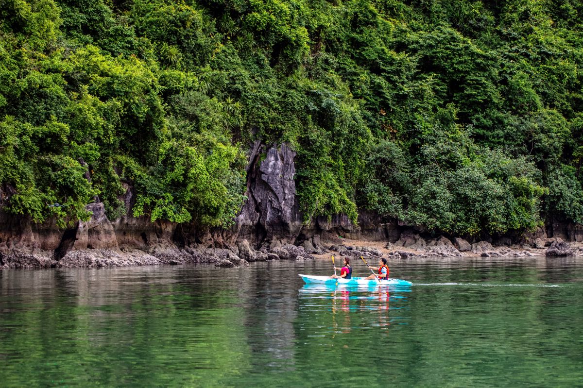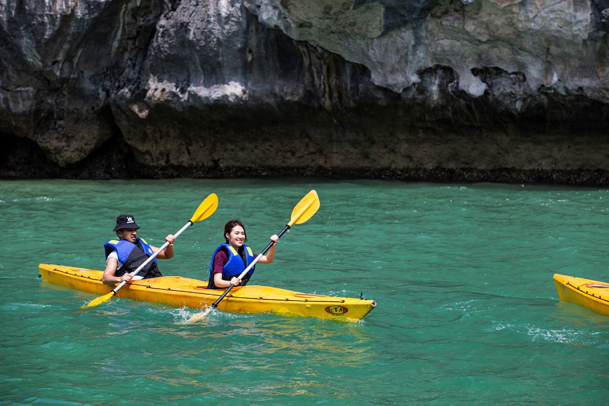可选择乘坐当地人划桨的舢板船,或两人皮划艇,探索宁静的陆龙洞。