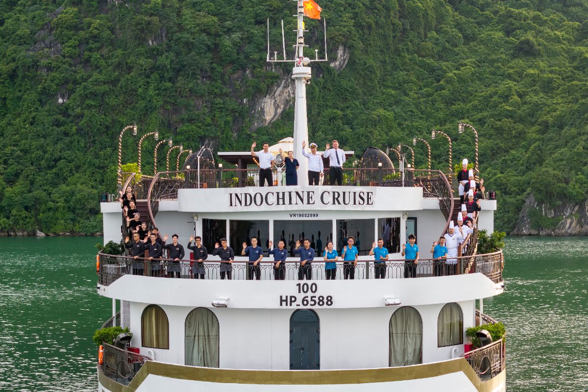 抵达下龙市团洲国际港(22 号)的 Indochine Lounge(Indochina Sails)。