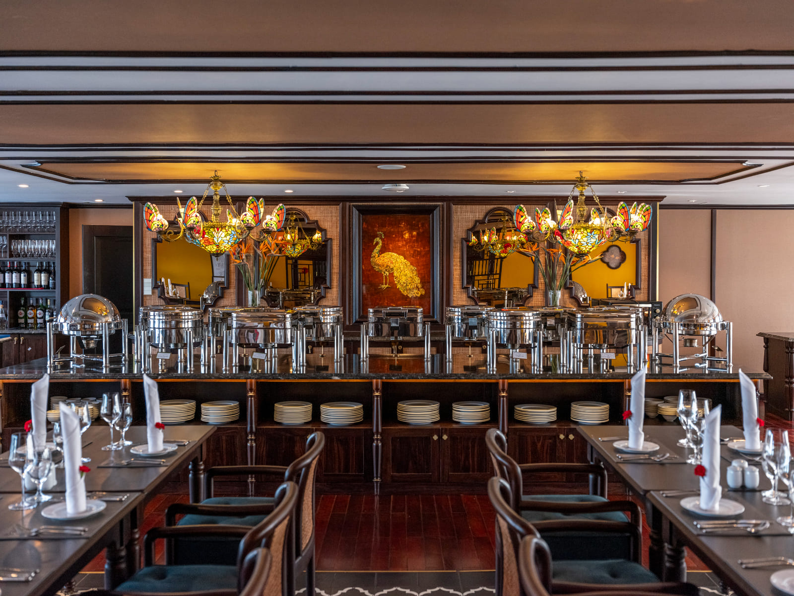 自助午餐 · 赏景巡航 在餐厅享用美味自助午餐,航行途中欣赏兰哈湾壮丽的岛屿景观。
