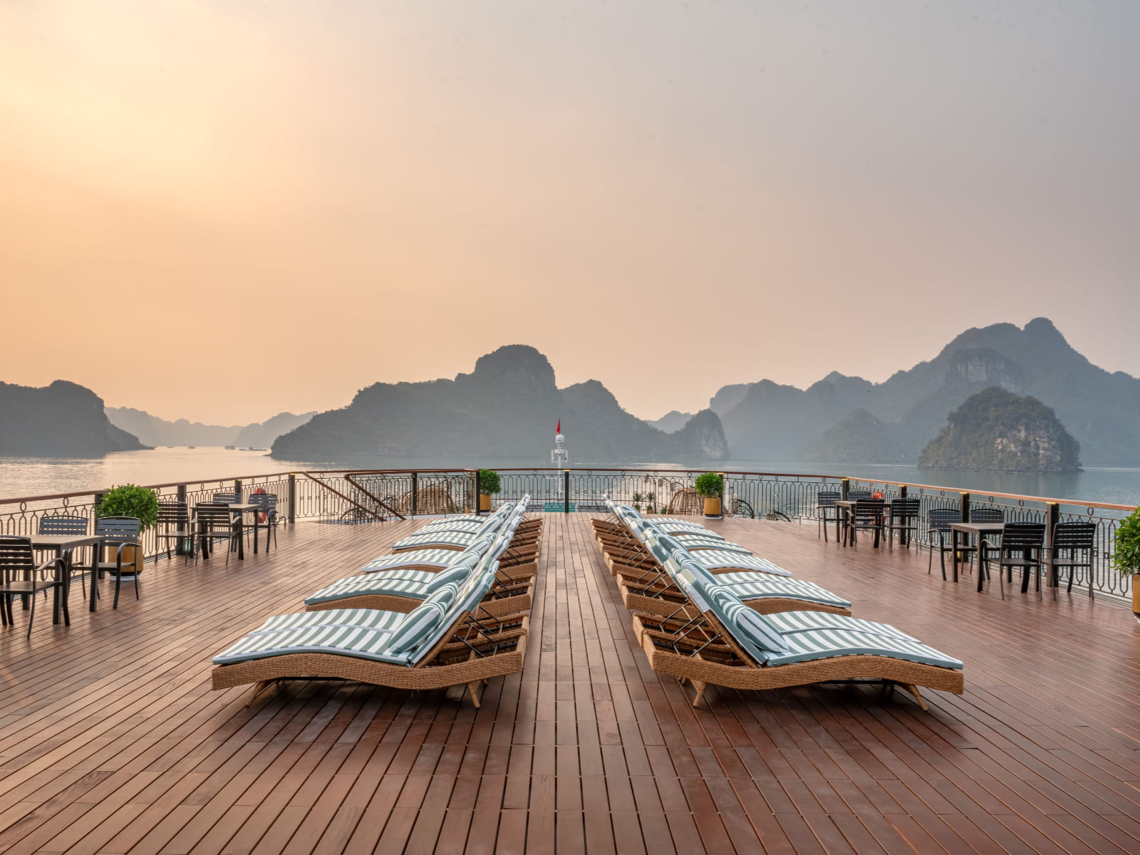 抵达下龙市团洲国际港(22 号)的 Indochine Lounge(Indochina Sails)。
