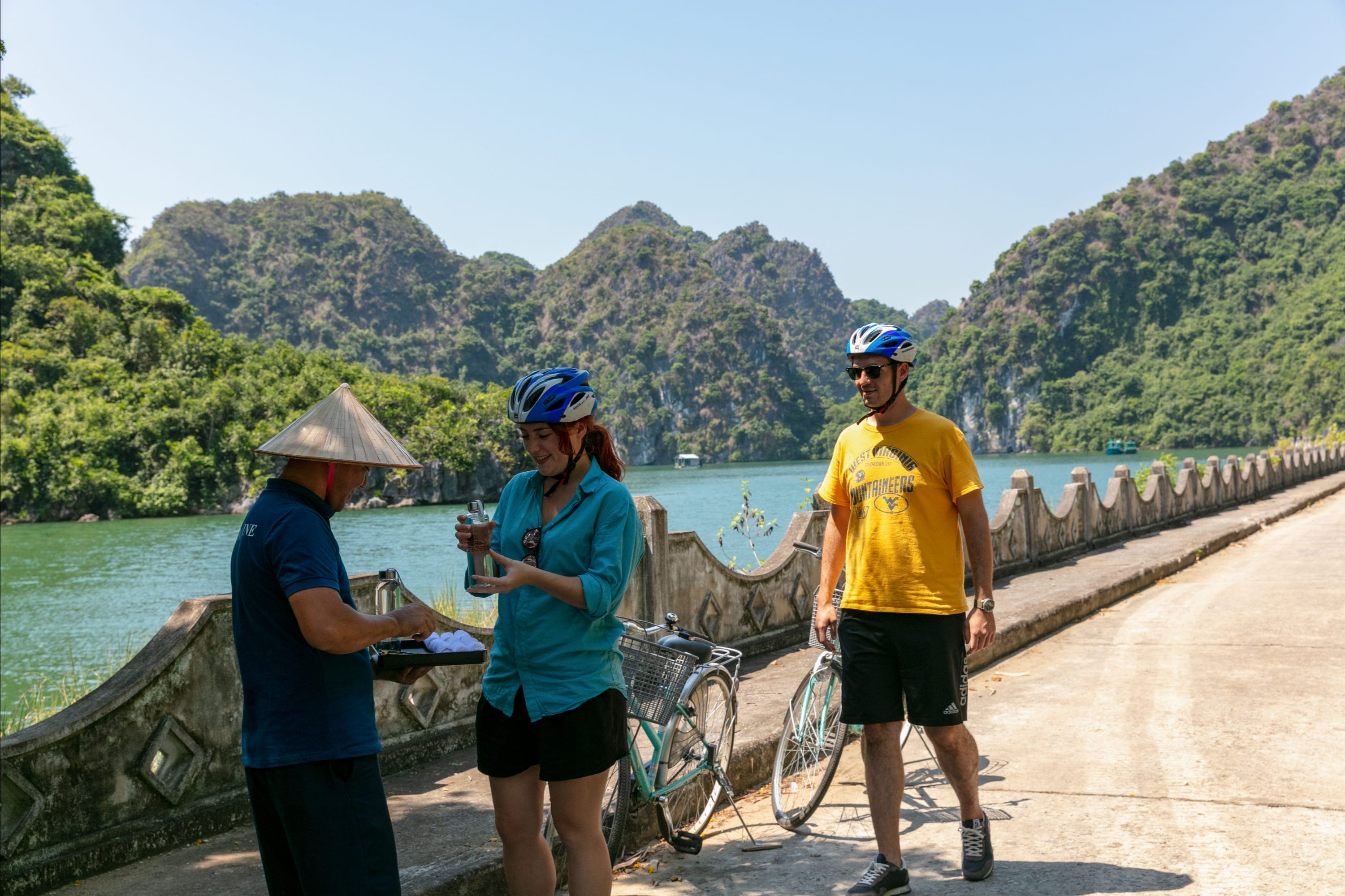 为开启一段地道而精彩的短途探险,您将从豪华游轮转乘当地精品日游船,展开一段难忘的越南传统之旅,前往 越海村。在宁静的村落中漫步,参观当地居民质朴而富有特色的房屋。随后可骑自行车或乘坐电动车沿着村道前行,欣赏吉婆岛迷人的自然风光。